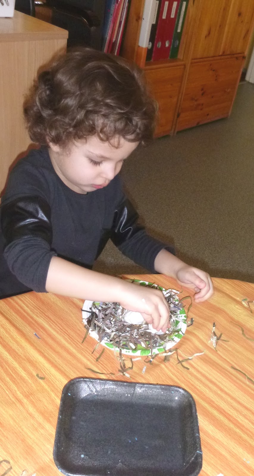 Jänkude rühma lastel on varblastele pesa ehitamise juba kogemus olemas, seega sai iga laps "oma" varblase, kellele ta asus appi pesa valmis seadma... :)